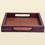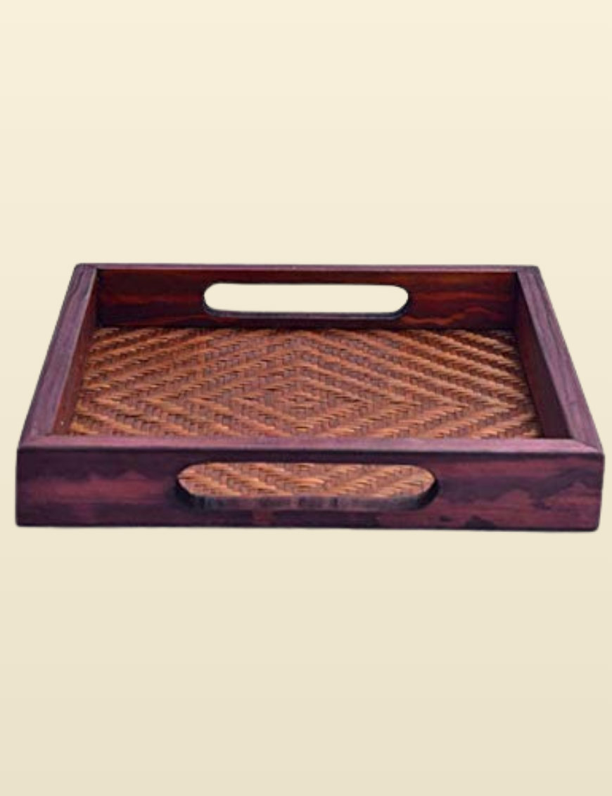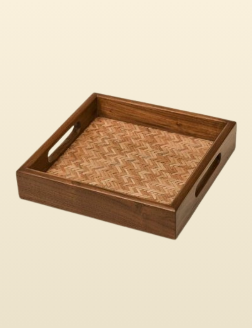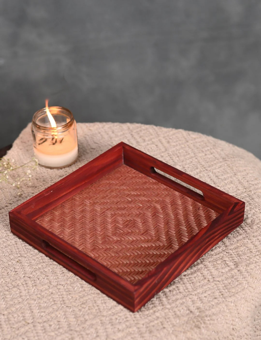 Handcrafted Square Wooden Tray – Bamboo Weave & Solid Frame for Serving & Decor